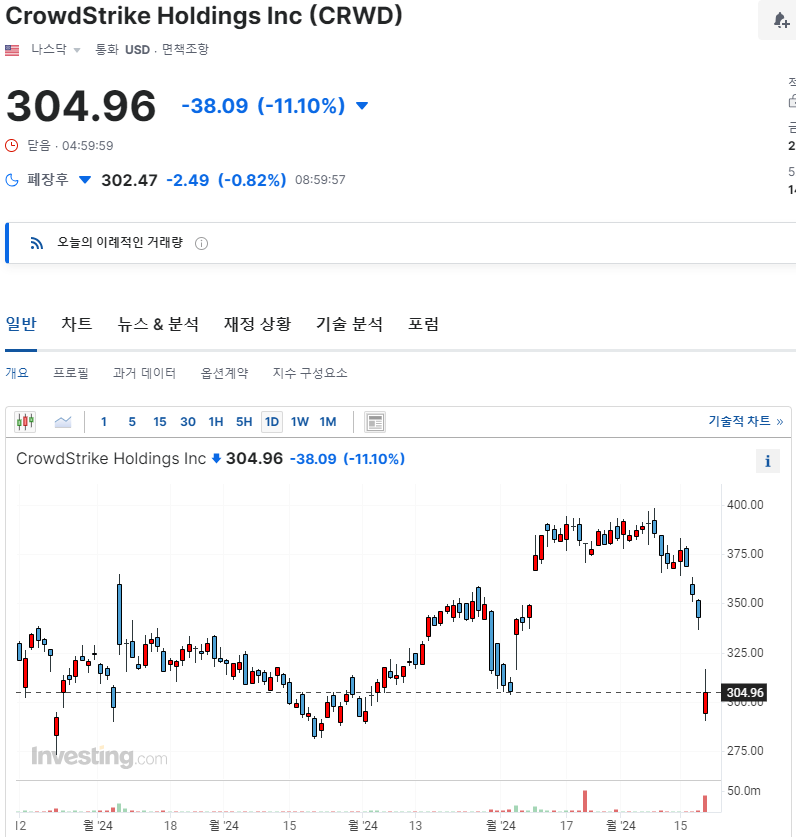 이번 일로 크라우드스트라이크는 주가는 큰 하락를 받게 되었고 배상책임의 문제까지 일어났다