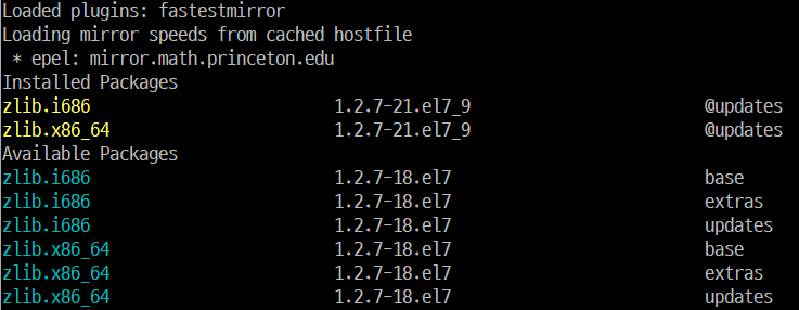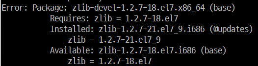 zlib-devel-1.2.7-18.el7 패키지 설치 중 에러가 발생