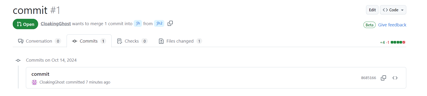 위 사진 탭 중에 Commits을 클릭하면 아래의 화면이 나온다.