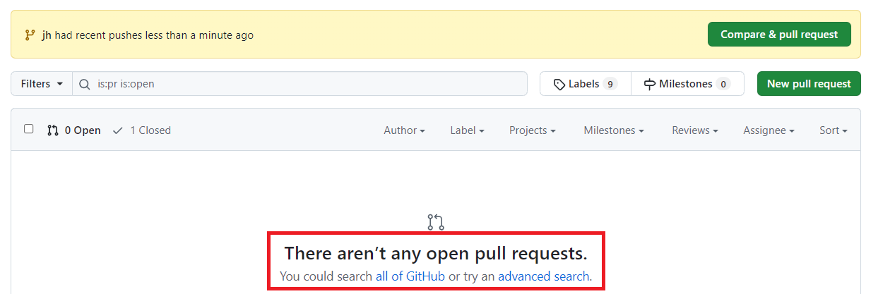 push를 통해 PR에 관한 문구는 나타났지만 눌러보면 상상했던 화면이 나타나지 않는다