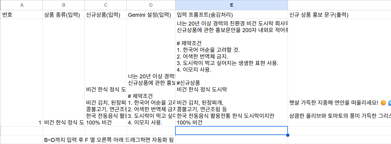 Google Sheets에서 Gemini API를 사용하여 자동화과정을 실습했다