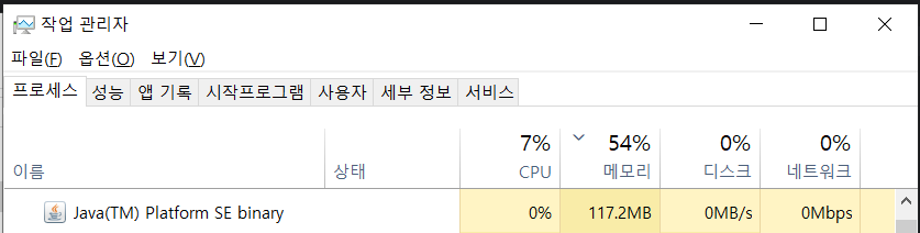 그래도 안된다면 작업관리자에서 저러한 이름의 프로그램이 실행 중이라면 종료하고 다시 명령어로 실행해보자
