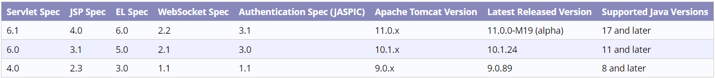The Apache Tomcat® software is an open source implementation of the Jakarta Servlet, Jakarta Pages, Jakarta Expression Language, Jakarta WebSocket, Jakarta Annotations and Jakarta Authentication specifications.